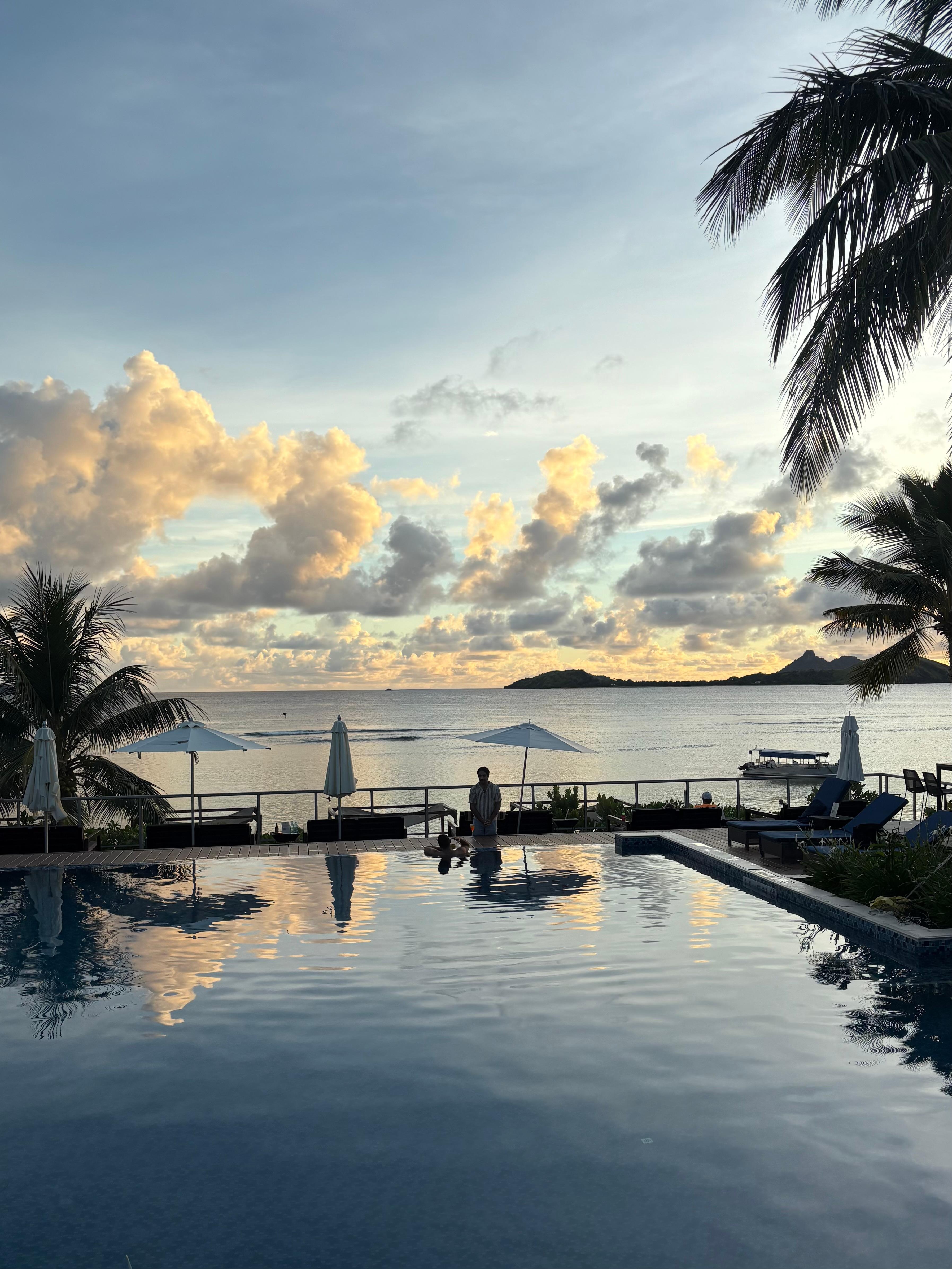 Paradise on Earth! The pool was clean and relaxing. Our room was cleaned beautifully daily. Views from the restaurants (especially at sunset) were to die for! The gem of the resort, though, is the staff! Activity/recreation staff of Lai, Vili, and Jelo became family. Eci was the most attentive and sweetest waitress. These people, plus more, elevated this vacation to a whole new level. The beach, water, and island view was BEAUTIFUL! There was minimal seaweed. The seaweed didn't affect us, because we swam out past it to the coral reefs. Great snorkeling with beautiful and varied marine life! We did bring our own snorkels. I highly recommend the Cast Away island/snorkel tour from the guys at the watersport hut on the beach. Fijian hospitality is exemplified at this resort!