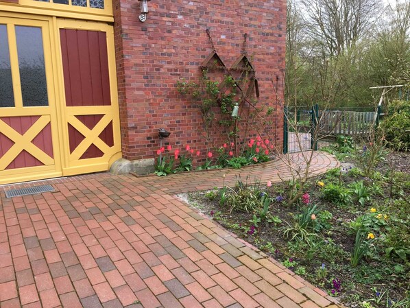 Dirkshof 2 West Rodenkirchenerstr. 1 26316 Varel près de Nordseebad Dangast, un bel appartement dans un manoir centenaire sur une propriété aux allures de parc de plus de 10 000 m² avec jardin et arbres centenaires. La propriété est à la périphérie de Varel. La zone piétonne avec ses magasins, cafés et restaurants est accessible à pied en 10 minutes. Un marché de boissons est dans le quartier, tout comme la piscine intérieure et un terrain de sport. La station balnéaire de Dangast en mer du Nord est à environ 8 km et le port de Varel à environ 3 km. Dirkshof 2 West idéal pour - voyages en groupe - environ 200 m², de plain-pied, sans obstacle, accessible en fauteuil roulant. Un appartement pour 12 à 15 personnes, aménagement convivial et moderne. Grande terrasse avec salon de jardin et barbecue, jardin clos d'environ 300 m² avec bac à sable. Buanderie avec laveuse et sécheuse. Si nécessaire, l'équipement supplémentaire suivant peut être fourni: lits enfants, chaises enfants, lit patient, fauteuil roulant, chaise de douche WC, poignée mobile supplémentaire.