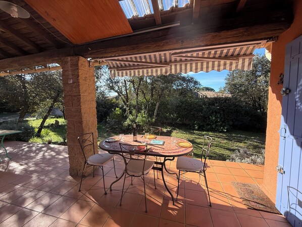 Toutes les chambres de l'hébergement Chez GG proche du Pont du Gard sont agrémentées de touches de confort comme un coin salle à manger séparé, outre des services et équipements comme une table à manger.