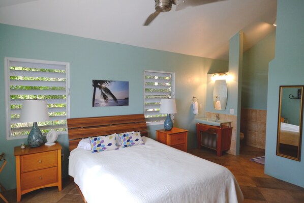 Casa Limon dispose de deux chambres avec un lit queen-size dans chacun, des ventilateurs pour garder au frais, deux salles de bains privées, salon avec une grande bibliothèque pour vous permettre de parcourir, et une cuisine complète ainsi que salle à manger extérieure et grill. Notre 2. La propriété de 5 acres offre une vue imprenable, d'arbres tropicaux - frangipanier, flamboyan - et arbustes colorés - hibiscus, bougainvilliers, ixora. Cet emplacement ne peut être battu avec une excellente randonnée, des courts de tennis à proximité, à seulement dix minutes de grands restaurants et la tournée Bio Bay. Lorsque vous avez besoin de sortir de tout cela, c'est l'endroit à venir.