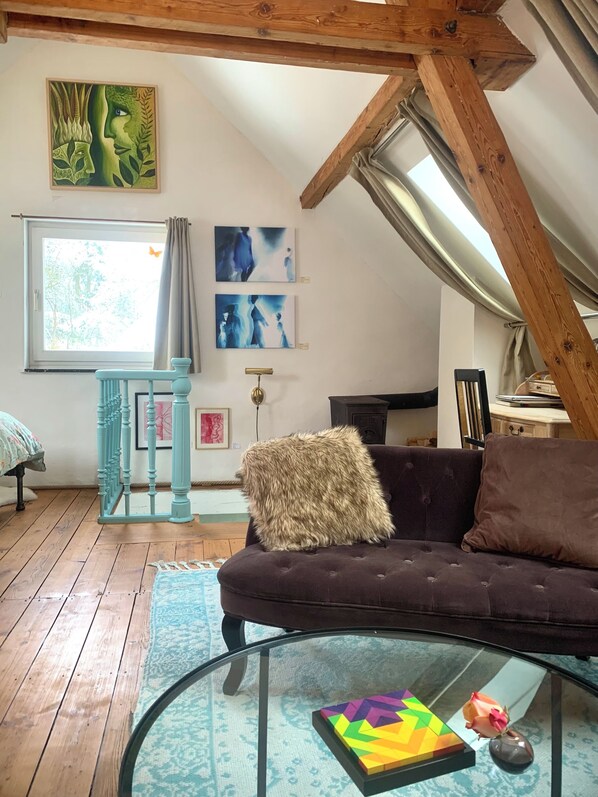 Auch hier oben gibt es einen Ofen und lädt Sie in der gemütlichen Sofaecke zum Verweilen ein.