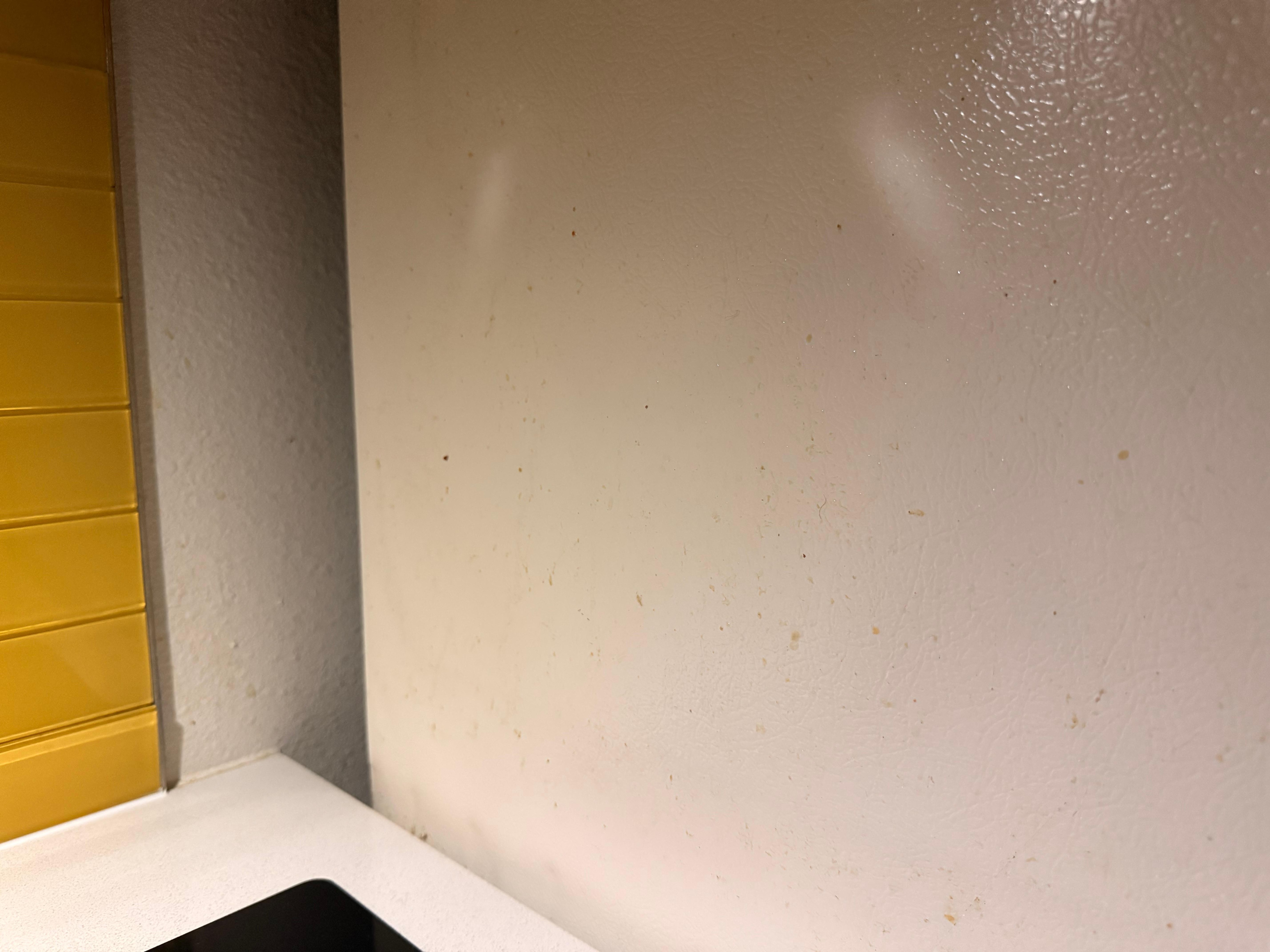 Rost an den Gittern der Klimaanlage, Badewanne mit vielen Schäden, Möbel mit Flecken.