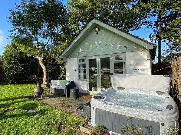 Pheasant Lodge, hot tub, open-plan living, fire pit, near Wimborne Minster