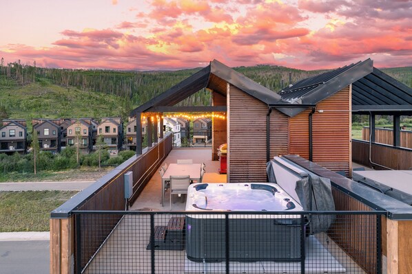 Recent construction. Modern style. Easy access to the ski area via the Winter Park bus system. Bus stop is a 3 minute walk from the condo. Would be cool in the summer with the roof top deck.
