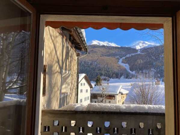 Bright 3.5 room flat with balcony in the centre of the village. The holiday flat is located in an old Engainer house on the 1st floor. It was converted from the hay barn in the 1960s. 2 village shops are nearby. In winter there are well-prepared ski pistes and cross-country ski trails. In summer/autumn it is the starting point for beautiful hikes near the Swiss National Park. The furnishings are functional and conventional. Kitchen with dishwasher. In the basement there is a washing machine with coin-operated machine if required: sFr. 1.60 per wash. In the garden there is the possibility to hang up the laundry in summer/autumn and there is a tumble dryer. The car park is below the house. Zuoz is about 20-30 minutes away from St.Moritz and the Upper Engadine lake district of Sils/Silvaplana/Champfer/Maloja, where you can go surfing and sailing in summer.