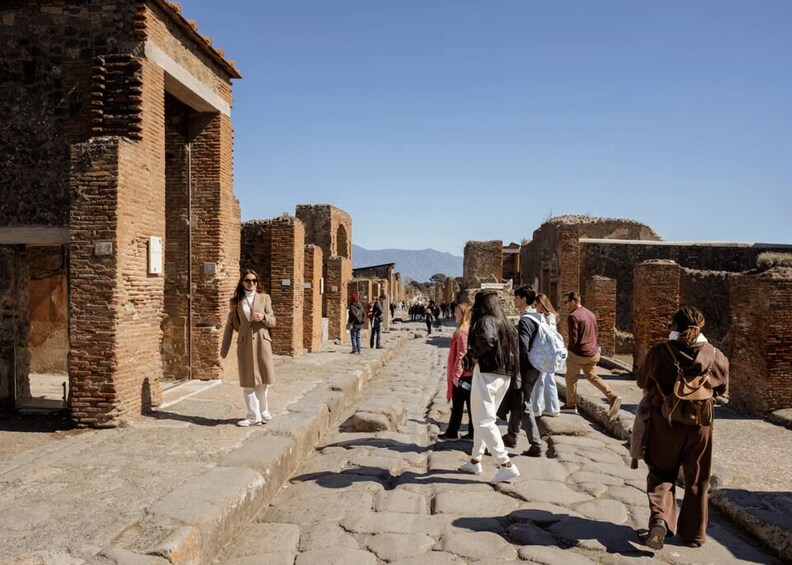 Erkunde Pompeji mit deinem Guide und erfahre mehr über den Ausbruch und das Leben der Einwohner der Stadt.