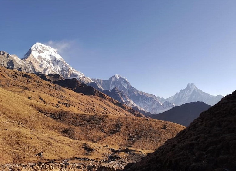 Embarquez pour un voyage inoubliable à travers la pittoresque région des Annapurnas grâce à notre randonnée Poon Hill, planifiée avec soin. Offrant des panoramas montagneux à couper le souffle et un aperçu de la riche culture locale, cette aventure promet une expérience inoubliable.