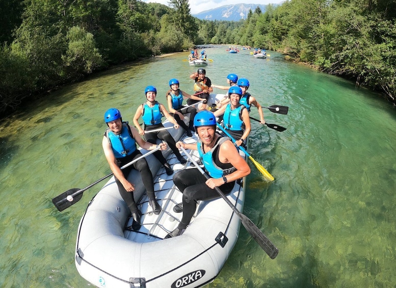 Steig auf ein Floß und begib dich auf ein einfaches Rafting-Abenteuer auf dem wunderschönen Fluss Sava Dolinka, der nur 5 Minuten von Bled entfernt ist. Die Tour beginnt mit der Abholung an deiner Unterkunft in Bled und einer kurzen Fahrt zum Startpunkt der Rafting-Tour. Dann erhältst du die nötige Rafting-Ausrüstung, darunter eine Schwimmweste, einen Helm, einen Neoprenanzug und Rafting-Schuhe. Für den Fall, dass es kalt wird, wird eine zusätzliche Wildwasserjacke zum Schutz vor Kälte bereitgestellt. Bevor es auf den Fluss geht, erhältst du von deinem Guide eine Sicherheitseinweisung.