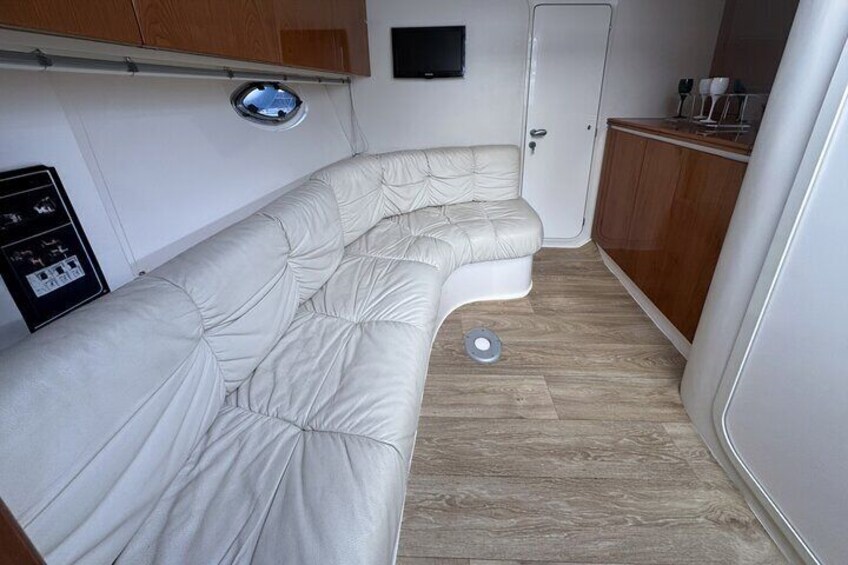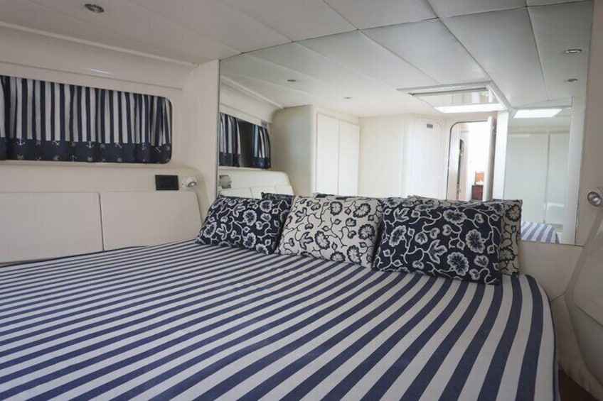 ITAMA 50 Yacht:Eine Mischung aus Eleganz und Sportlichkeit, mit zwei geräumigen Kabinen und zwei Badezimmern. Interner Wohnbereich, Solariumterrasse am Heck.