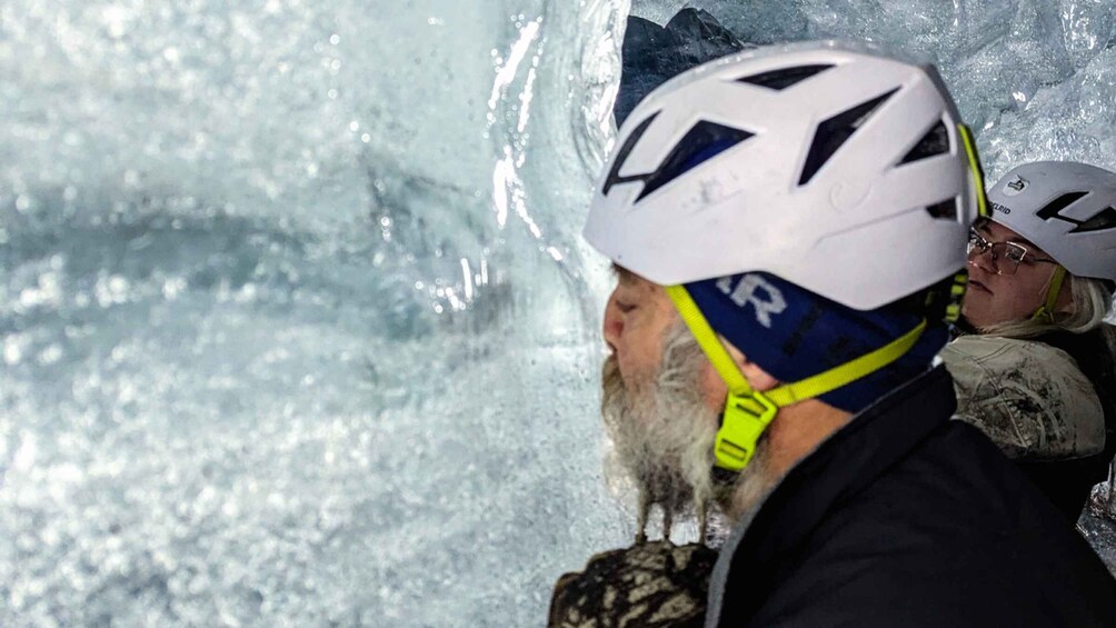 Der Höhepunkt deines Abenteuers erwartet dich in der Eishöhle Katla, die am Fuße des mächtigen Katla-Gletschers liegt. Ausgerüstet mit Steigeisen und Helmen wagst du dich tief in das Herz des Gletschers, um die faszinierenden Eishöhlen zu entdecken. Diese Naturwunder, die von der Zeit geformt wurden, zeigen eine faszinierende Verschmelzung von blauem und schwarzem Eis und bilden ein atemberaubendes Labyrinth unter dem Gletscher.