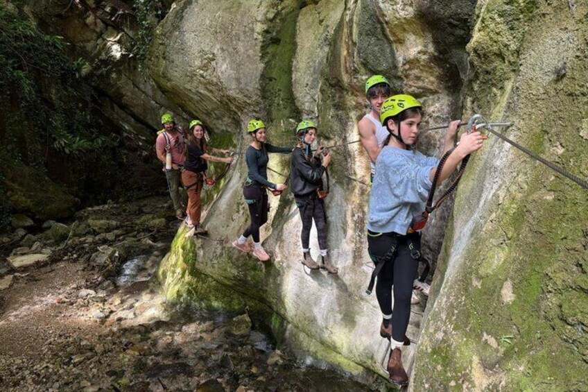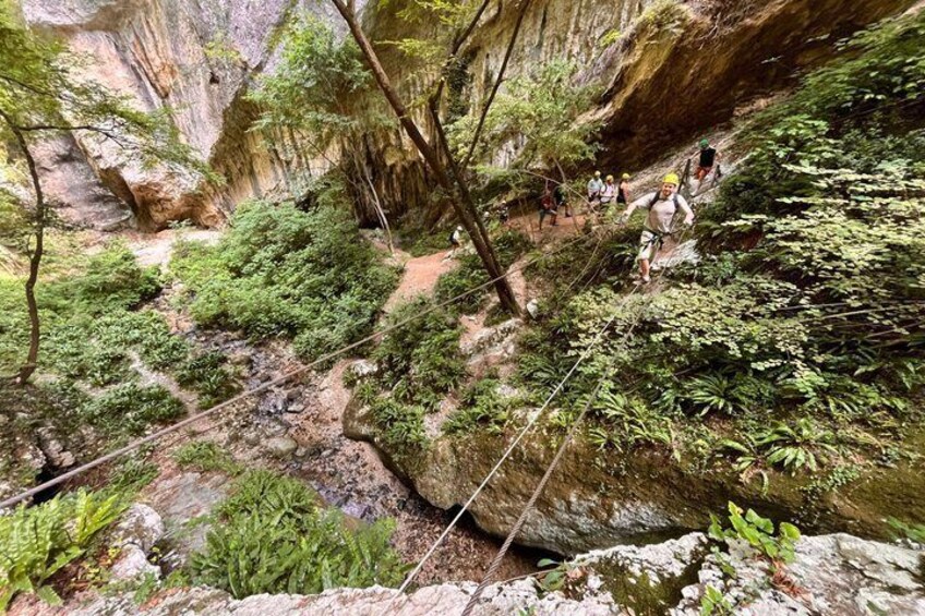 Einzigartiges Erlebnis in einem “Jurassic” Ort. Spaß in einer verborgenen natürlichen Umgebung, die nur über den Klettersteig erreichbar ist.